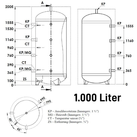 Energie - Pufferspeicher mit 1 Wärmetauscher