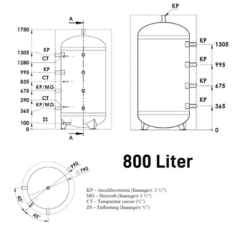 Heizwasser Pufferspeicher 500 Liter