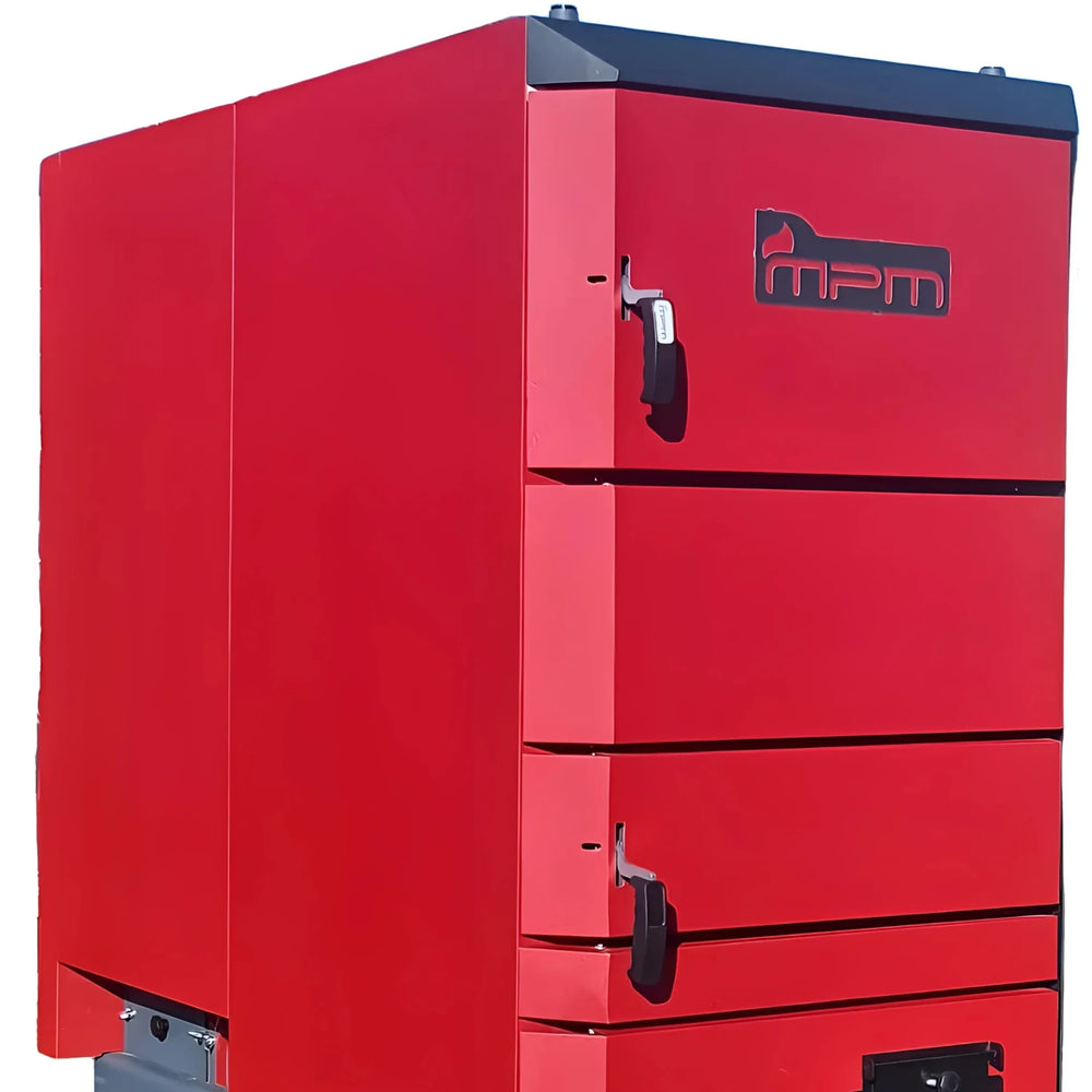 La chaudière à gazéification de bois MPM Wood Plus 10 est conçue pour fonctionner avec des bûches (teneur en humidité ≤ 25 %) et est équipée d'un ballon tampon pour un rendement énergétique optimal. Elle est classée A+ et classe 5 selon la norme PN-EN 303-5.