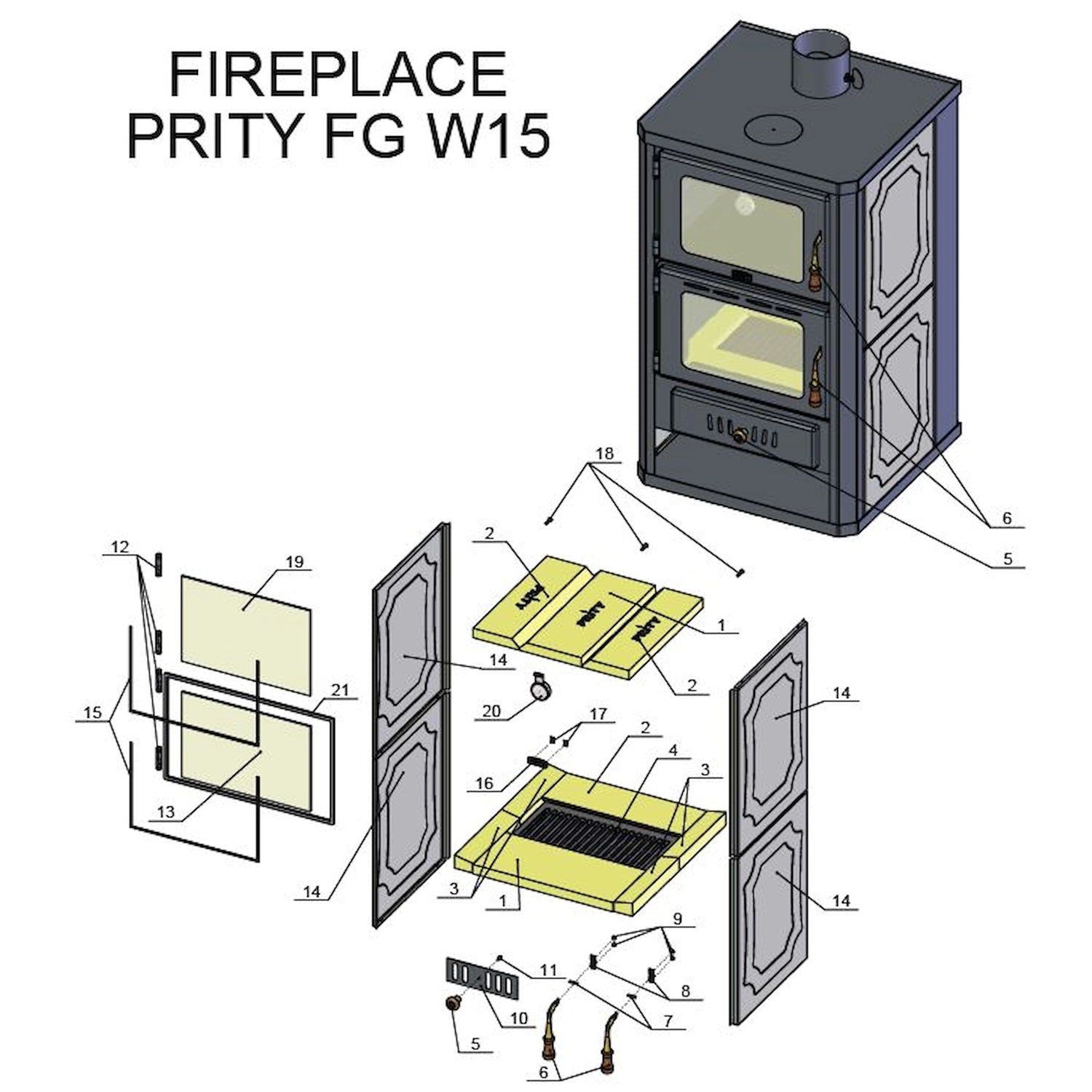 Poêle à bois à réservoir d'eau avec compartiment de cuisson Prity FGW15 - 19,8 kW | GEMA Shop