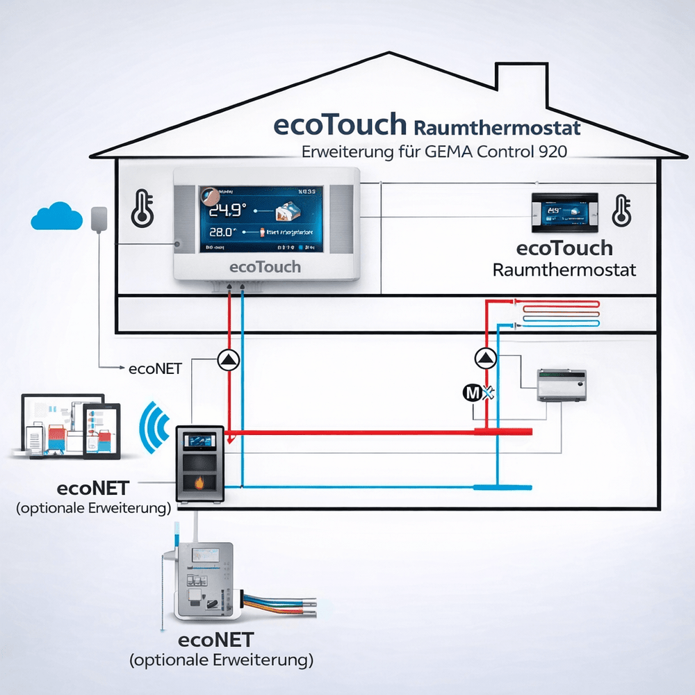 Der Gema CONTROL 920 ist für Zentralheizungsanlagen in Ein- und Mehrfamilienhäusern konzipiert. Er eignet sich für Neubauten ebenso wie für Modernisierungen bestehender Heizsysteme.