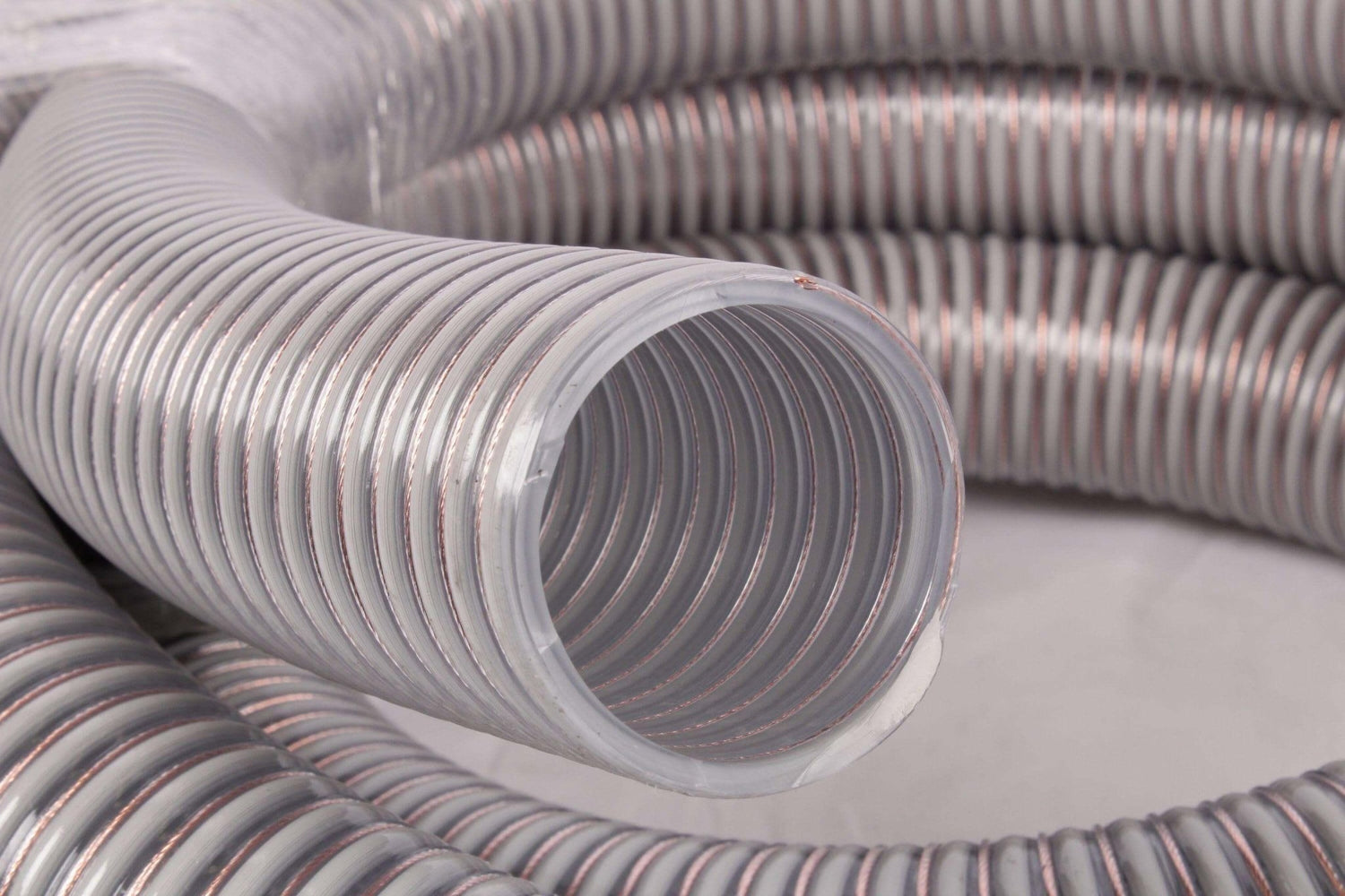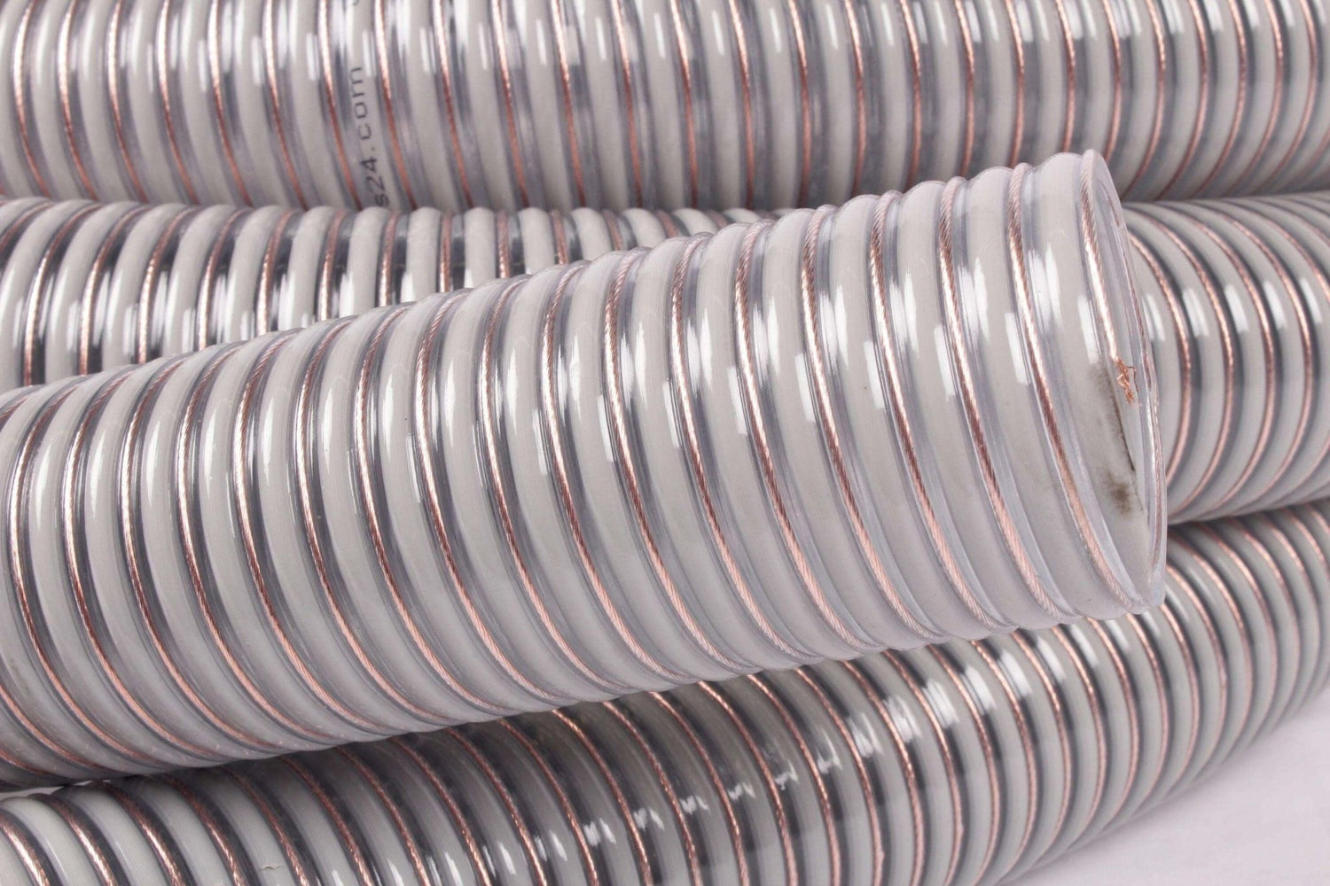 Der Schlauch ist antistatisch und besteht aus PVC mit eingebetteter Hart-PVC-Spirale und integrierter Kupferlitze. Achten Sie besonders auf eine beidseitige Erdung.